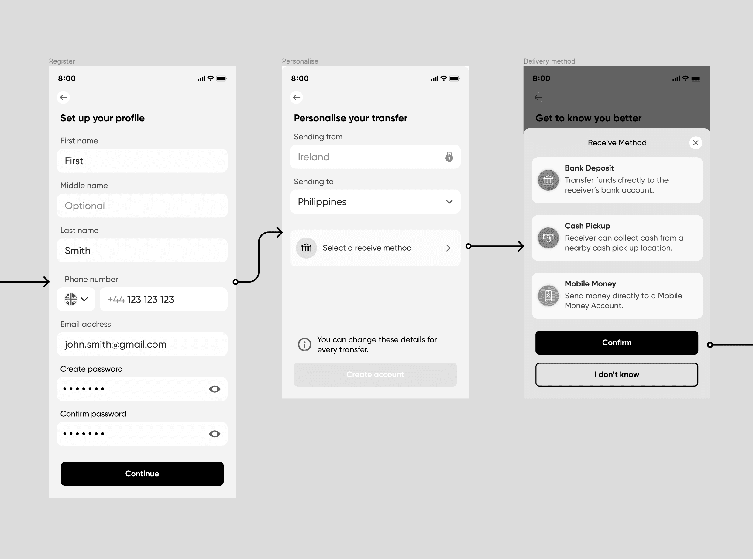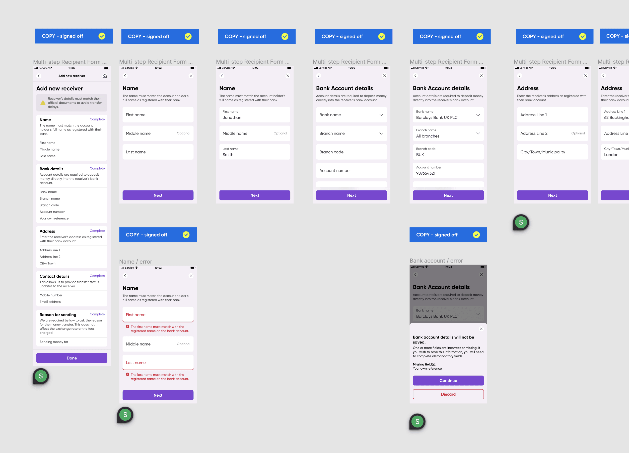 This sparked research within WorldRemit regarding the merit of a multi-step receiver form. After 30 user interviews and external inspiration from other apps that were doing the same, the new app adopted the Multi-step form.